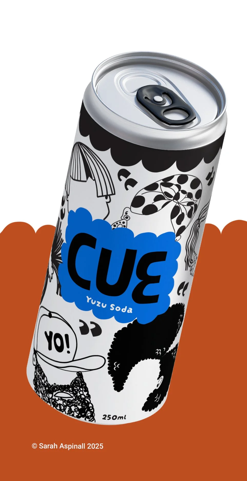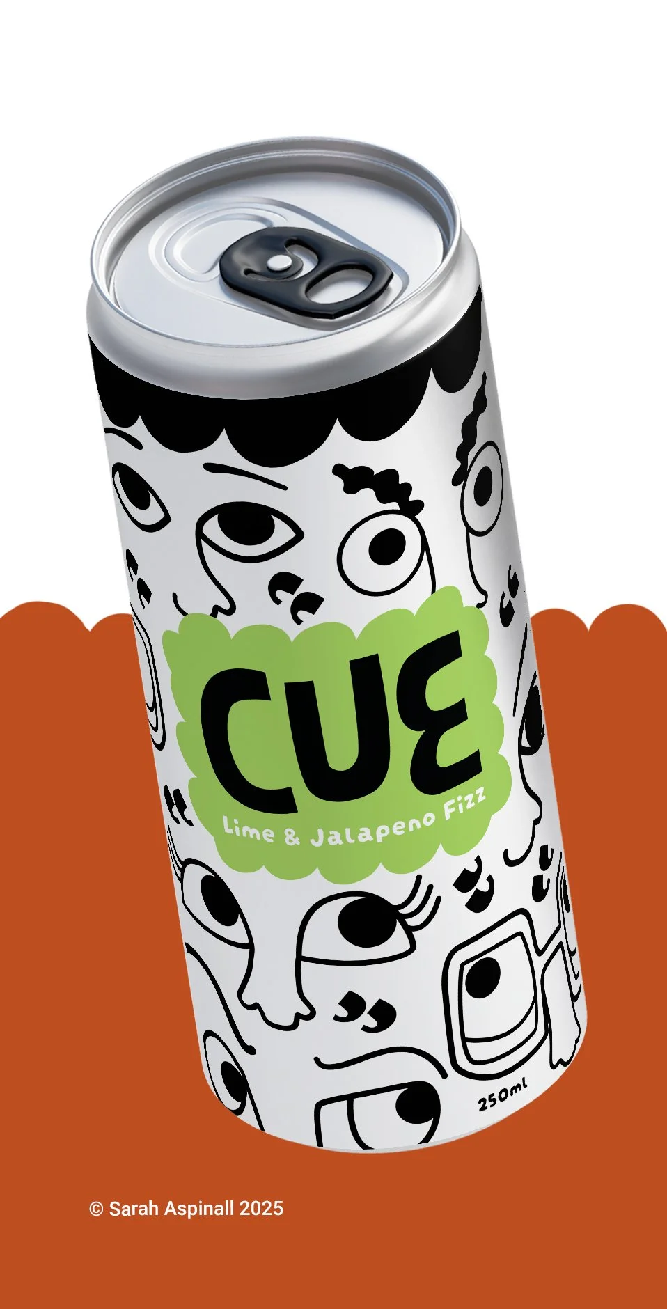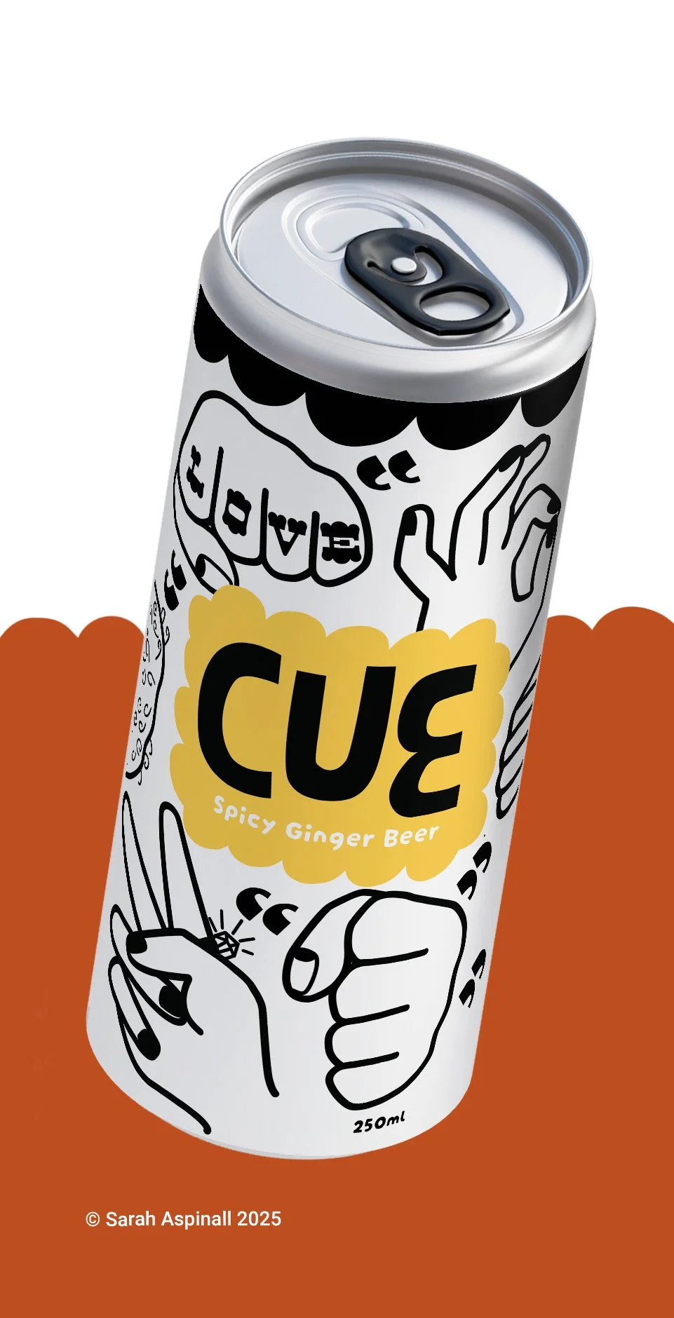 Cue, an alcohol free beverage simply twitching with personality. I designed the packaging as well as developed the brand name and concept by exploring the many ways we communicate non-verbally.