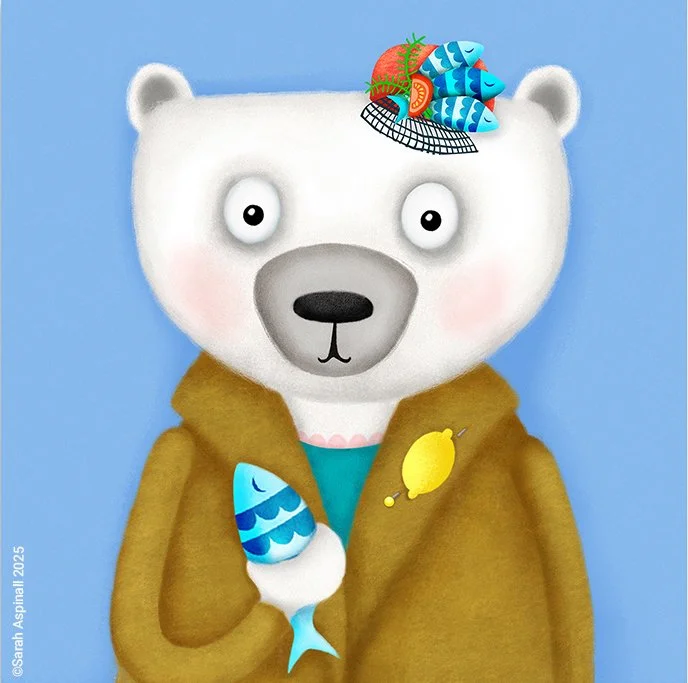 Hungry Bears, illustrated interior design inspired by dietary requirements. A Nordic Polar bear enjoys her fish, the Brown and Grizzly bear enjoys many a meat. Meanwhile, at the Teddy Bears picnic there are cakes and treats aplenty.